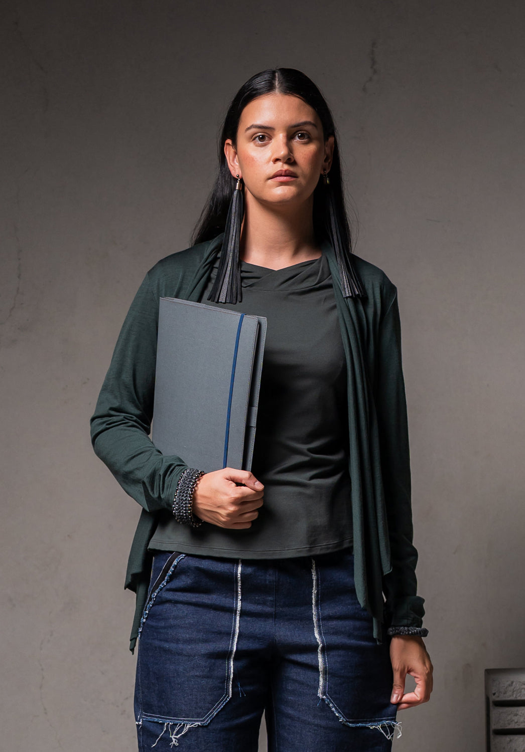 Material: Recycled denim, A4 plain wire-bound recycled paper pad – 70 pages of 80gsm paper