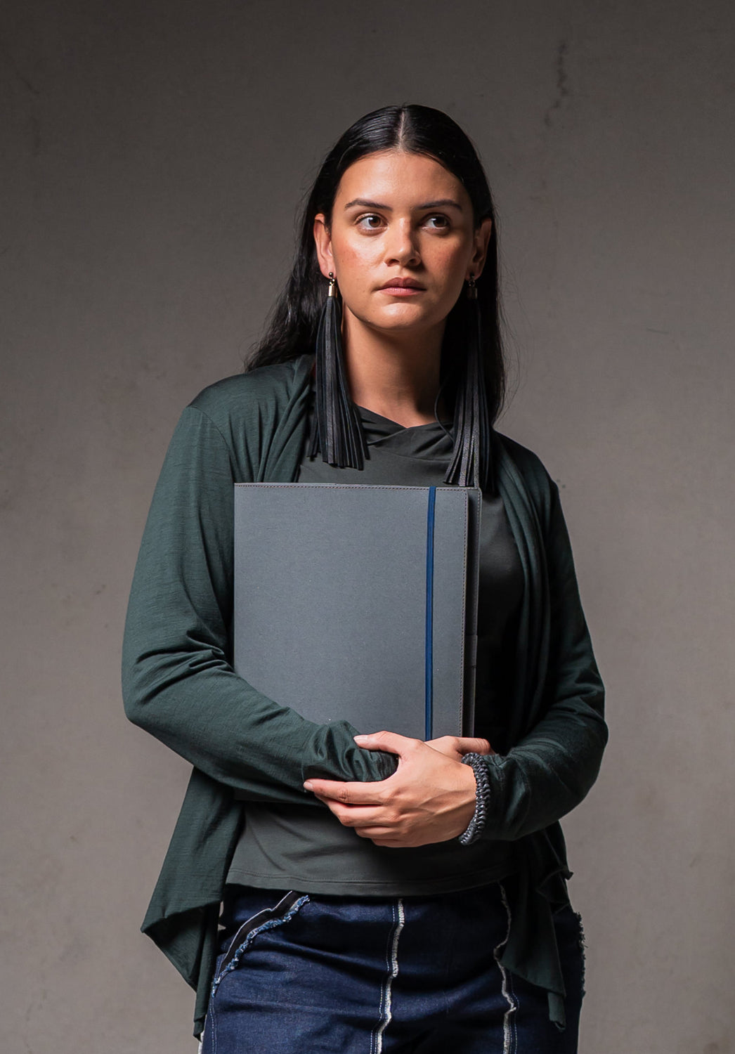 Made from recycled denim, the A4 Australian made journal features an inner pocket with two slits for business cards, refillable A4 notepad, a pen loop and elastic closure.