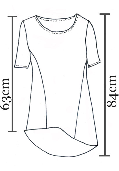 Made of a soft organic cotton, this loose top style has a twisted seam front and back that gives a slight asymmetric shape. Finishing slightly longer at the back for extra coverage, this top also has a raw edge so it can be easily shortened if you require. The sleeves are short to make the style more breathable in the hotter months and the sleeves and neckline are coverstitched to finish. This is the perfect sleeved summer top, easy to wear over any style of pants or skirt.
