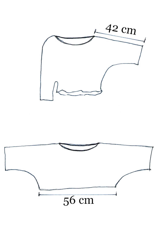 This one size loose top was created by Sarah as part of her Archive Project using special fabrics that we have stored from past collections. There were assorted rolls of different colours but not enough to use for a production run. By making a one size overtop we were able to cut assorted colours and fabrics to offer a variety while using up these gorgeous fabrics. This is part of our Zero Waste policy and the ethos of Sustainable Fashion.