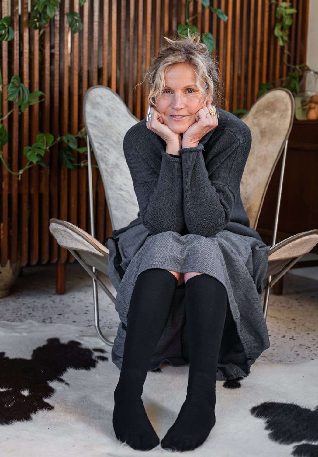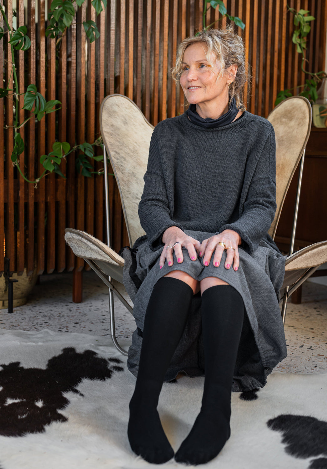 Using sustainable bamboo fibre, these socks are supersoft, breathable and cool. We had these Knee Hi socks custom made for us in Melbourne and they are great with skirts and dresses, also under pants in winter for extra warmth. They are very stretchy and can be pulled up over the knees if you're shorter, or comfortably worn under the knees.