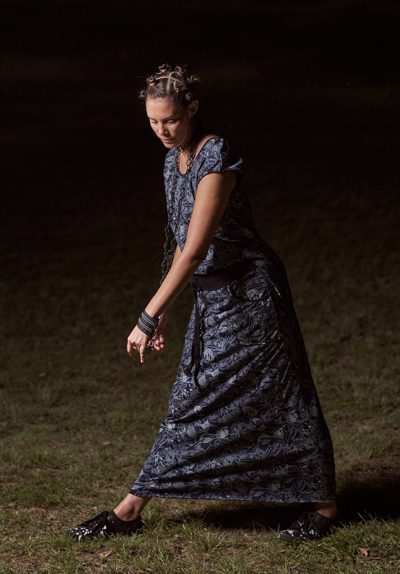 As part of Collection #15 the Harmony Skirt needed to have a soft gentle waistband. The skirt part is attached to a loose organic cotton rib band which is held up by a soft New Zealand made cotton drawcord which ties off-centre to the right hand side. The drawcord is long enough to hang down adding to the detail of this style. There is two front pockets bound in stretch organic cotton and the maxi version is extra long with a raw hem that can be simply cut off to shorten.