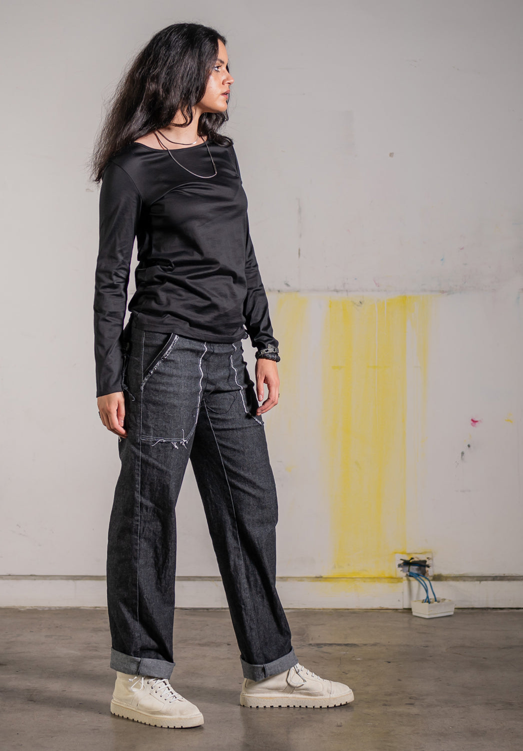 Main - 95% cotton/ 5% elastane - Japanese black denim - 270gsm. Fabric made in Japan.