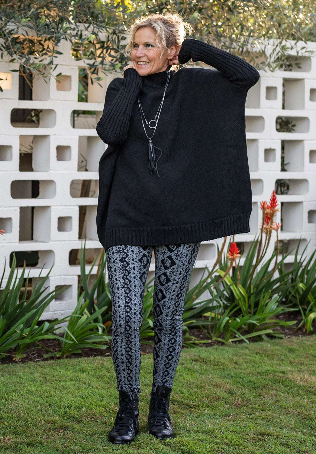 The Lanky Legs are a fitted legging with a centre front and back seam and no side seam. The bottom of the Lanky isn't skin tight, so they are super comfy and less 'activewear' looking. The wide shaped waist band sits flat on the tummy, these leggings give a flattering silhouette. They are made from our mid-heavyweight bamboo jersey which has been knitted tighter to create the perfect pants fabric