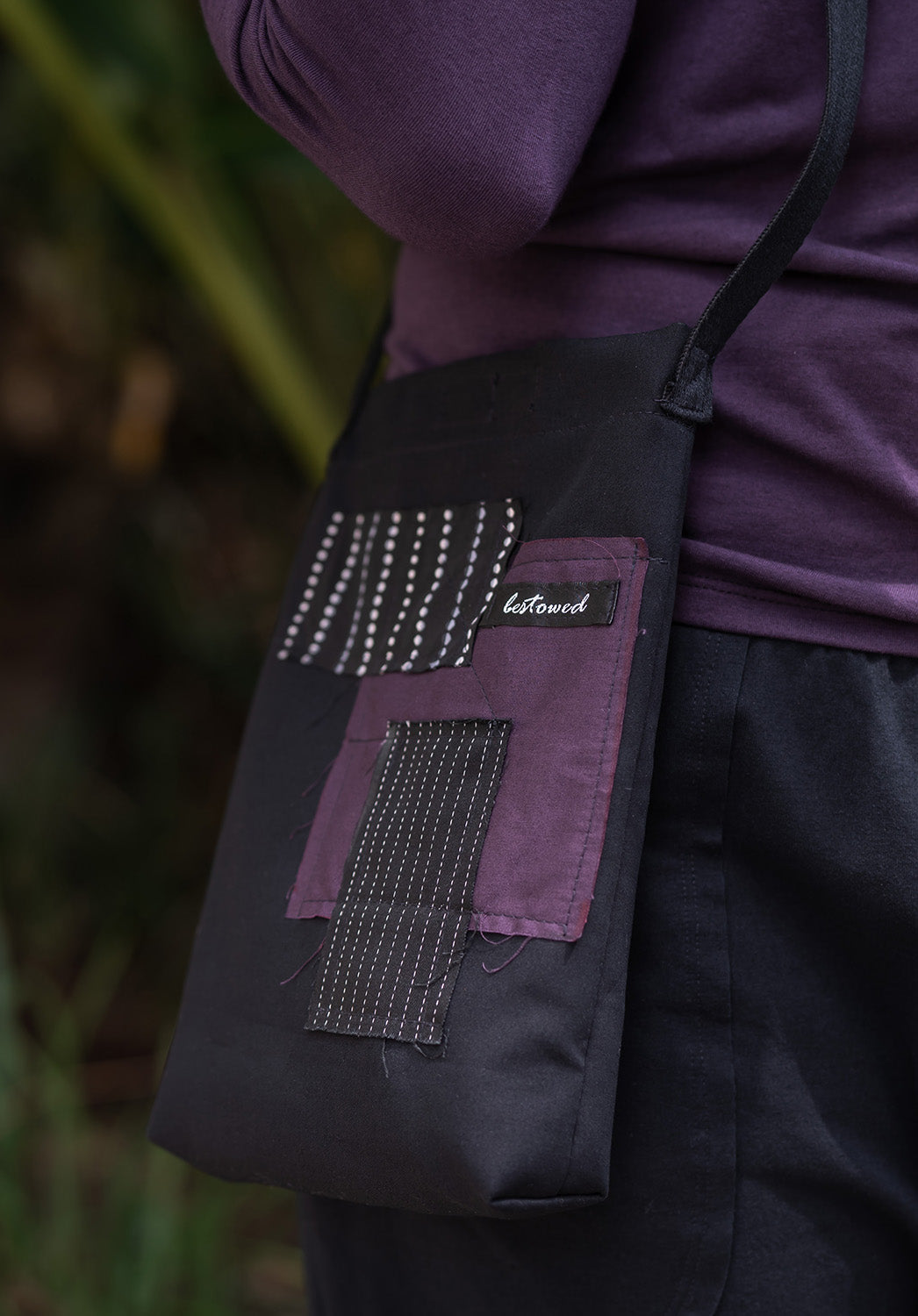 this is a lightweight bag that is comfortable to be worn as part of your outfit and as the strap is cotton and not synthetic, it's soft against your skin.