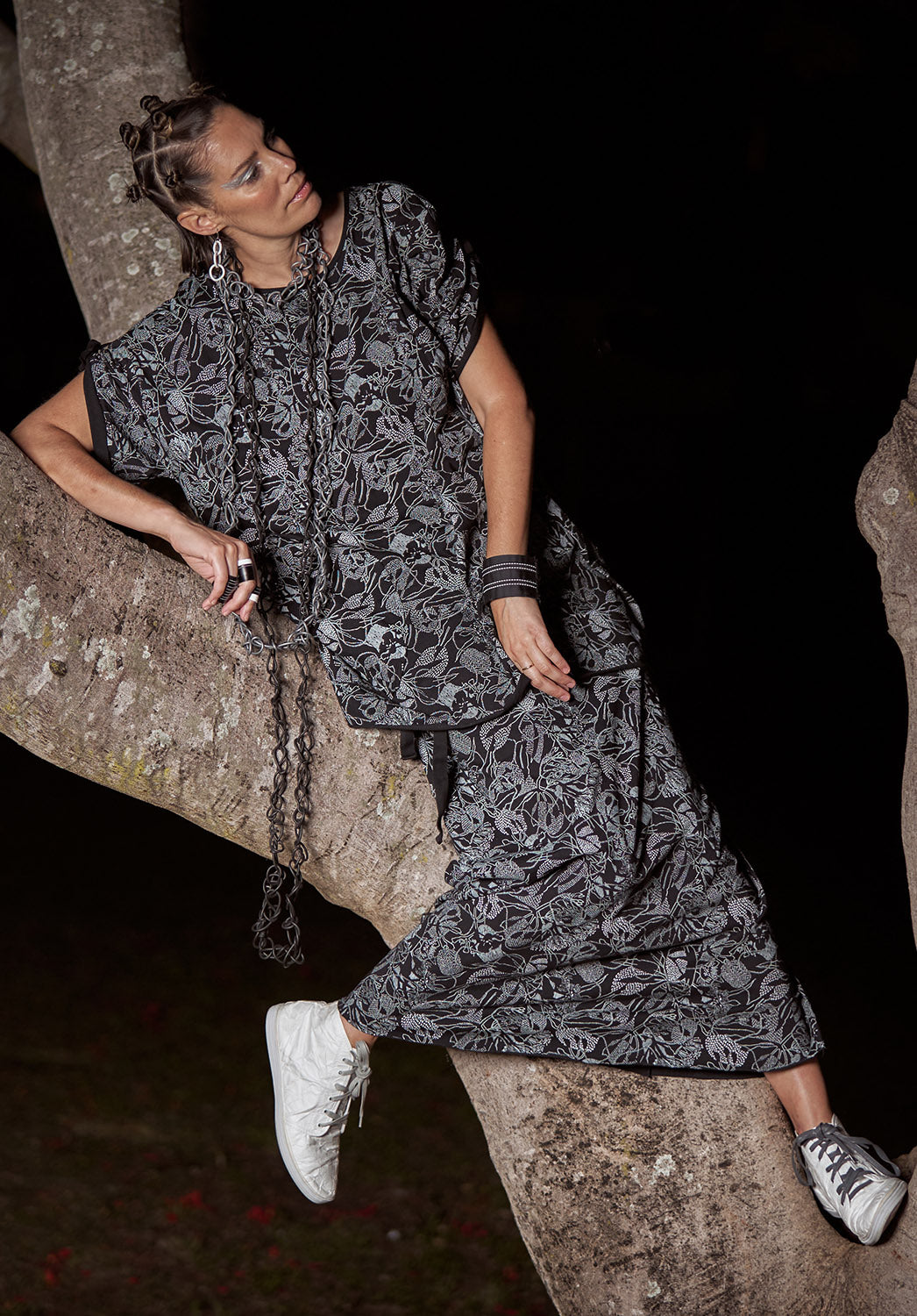 This seasons print is an original artwork by Brisbane artist Rachael Lee titled 'Treasured Gems'. The work is a hand carved lino print, that has been screen printed onto Australian made organic cotton jersey in Melbourne. You can read more about it here.