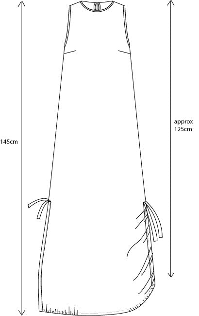 A simple but flattering neckline, it has bust darts and pockets inserted into each side seam. The half lining is a light cotton voile that ensures it won't be transparent but keeps the style nice and light for summer.