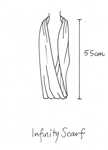 This pure Australian merino scarf is circular, joined with a black stretch mousseline bind. It easily loops around your neck twice or wear draped over the shoulder. Great over any outfit needing some neck detail and warmth.
