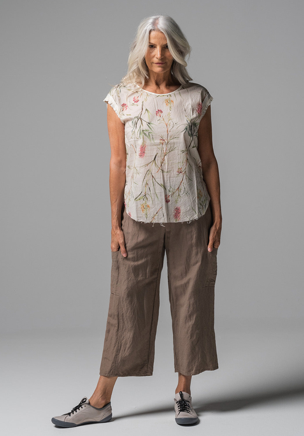 Moonlight top natural grevillea cotton