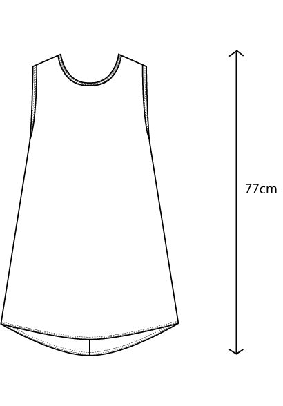 After much feedback on singlet shapes, Sarah designed Nancy as a lovely loose shape which flares from the bust down. This gives it a nice swing and also sits perfectly over our range of skirts and pants. It comes down longer at the back to provide more coverage and the neckline and arms are bound in matching bamboo jersey.
