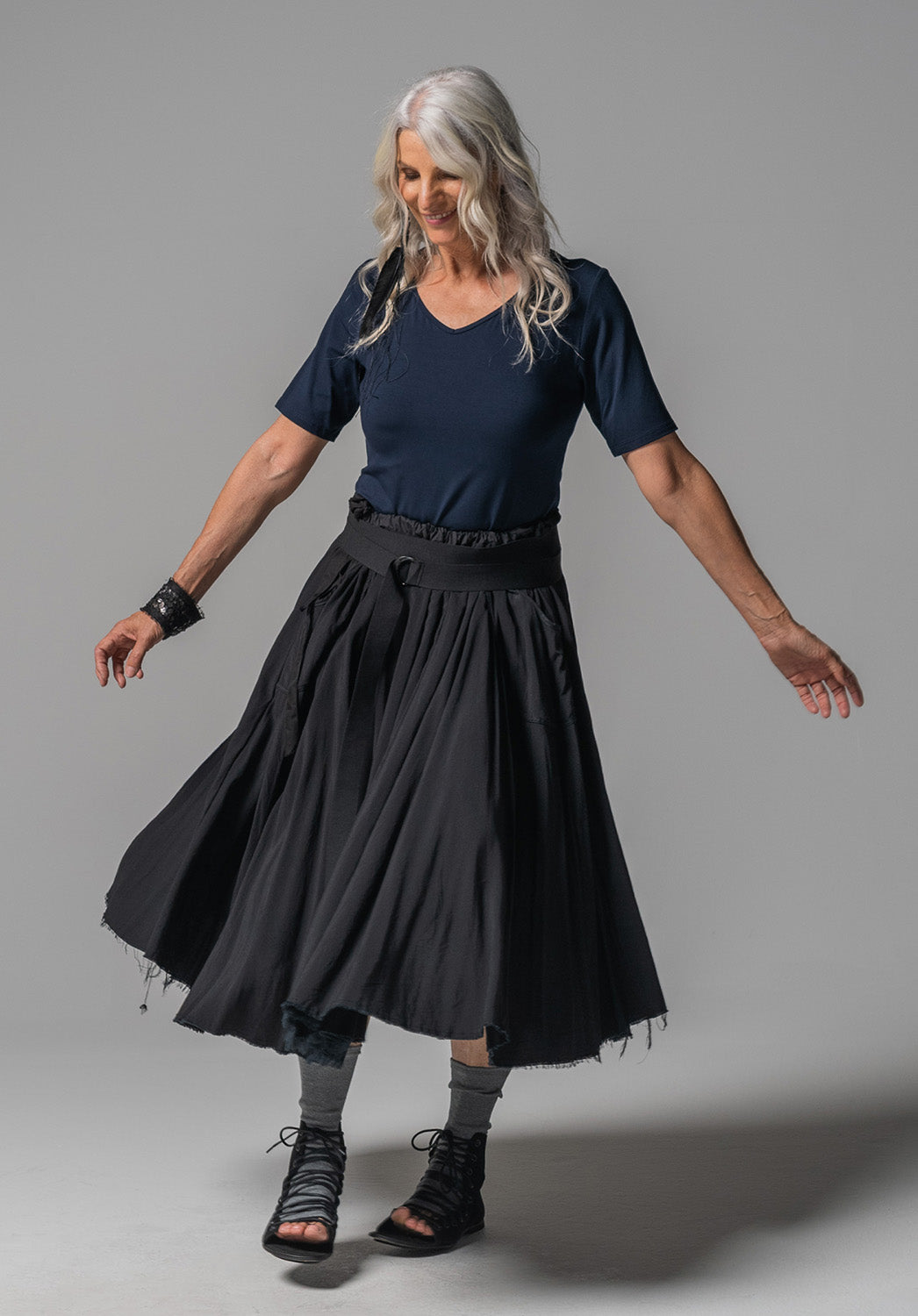 Our pure silver haired model, Rachel wears a size S and is 173cm tall.