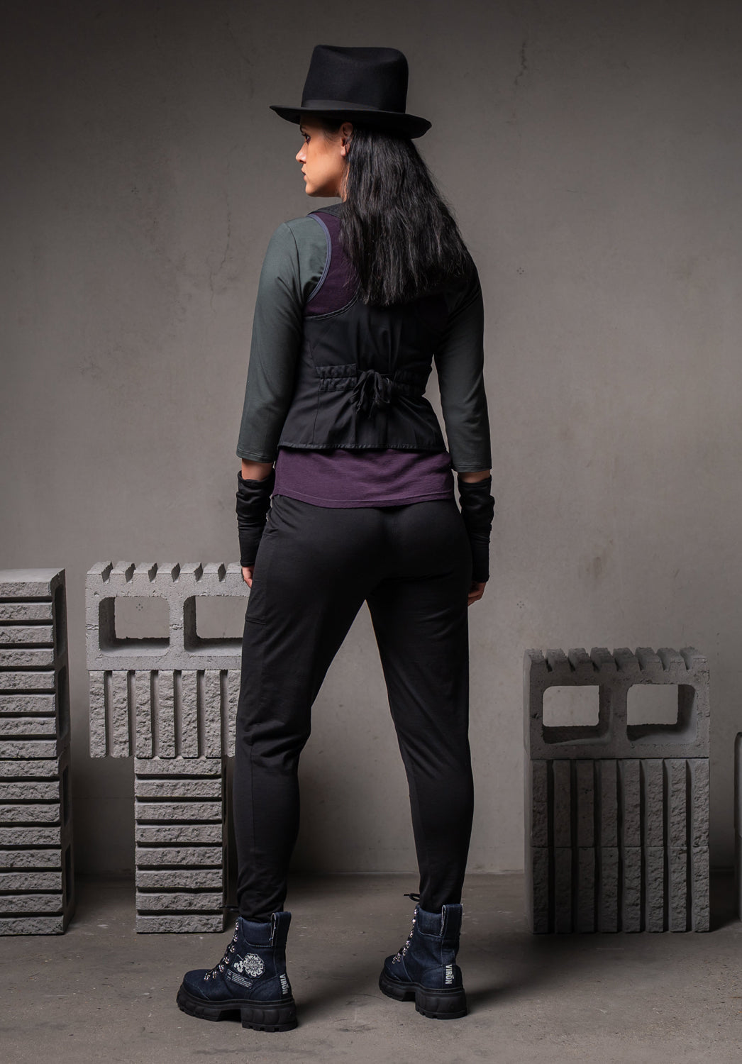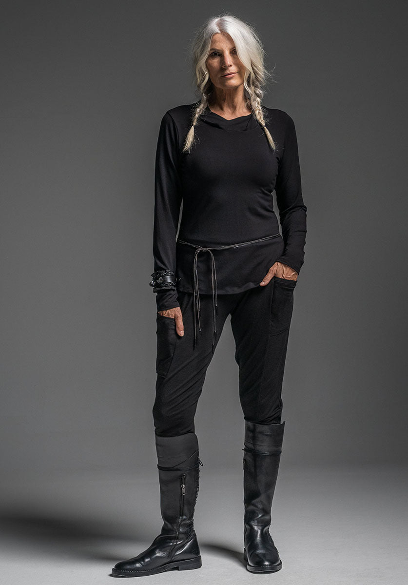 The Nellie is a soft knit pant first available in our bamboo jersey, and now available in a fine Australian merino jersey. A full length pant it bunches up gently to be worn with boots because of its slim leg shape. The fold down waistband is made from the same merino jersey and can be positioned to where it sits most comfortably. Nellie has 2 asymmetrical pockets that are a cute detail but also functional.We have done a tutorial for the waistbands on this style. It can be found here.