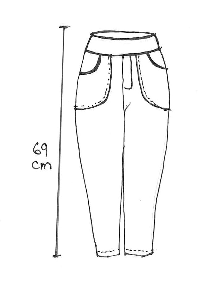The front has two handy pockets and the back has a panel stitched on top to create a section that's double thickness. This helps ensure they don't get a 'baggy bum' and covers underwear lines. They are 14 cm shorter then the cropped Trinity Pants coming under the knee and a great summer option.